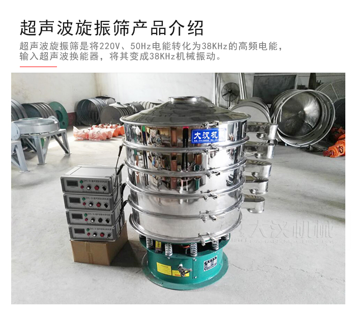 超聲波旋振篩是將220V、50Hz電能轉(zhuǎn)化為38KHz的高頻電能,輸入超聲波換能器,將其變成38KHz機(jī)械振動(dòng),從而達(dá)到篩分和清網(wǎng)的目地,使微細(xì)粉篩分成為易事。