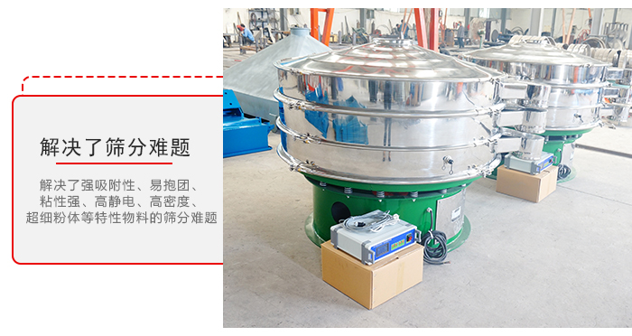 2.超聲波旋振篩解決了強(qiáng)吸附性、易抱團(tuán)、粘性強(qiáng)、高靜電、高密度、細(xì)粉體等特性物料的篩分難題;