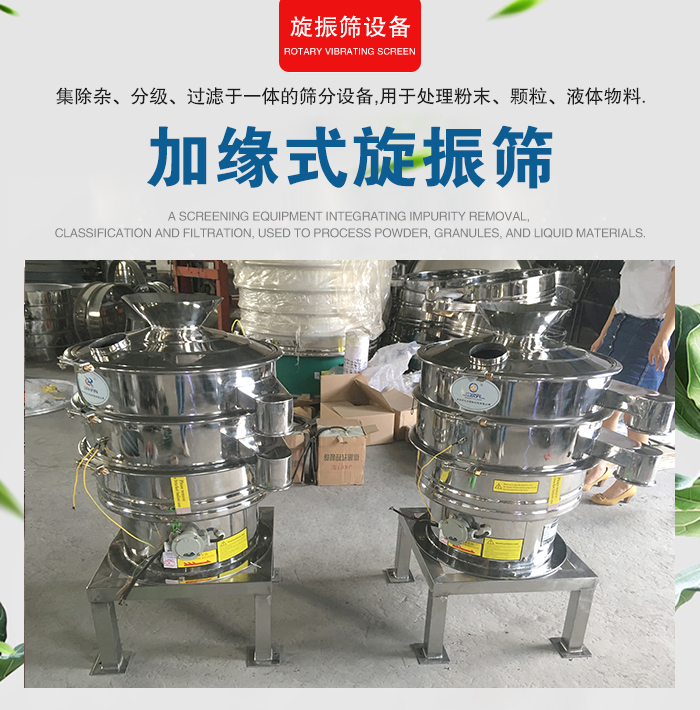 加緣振動篩在普通旋振篩的基礎上加強了包邊,使其具備了大投料量、有效防止物料飛濺,易于觀測物料、篩網的特點。滿足了更多用戶的篩分需求,該產品對于物料有一定的針對性。