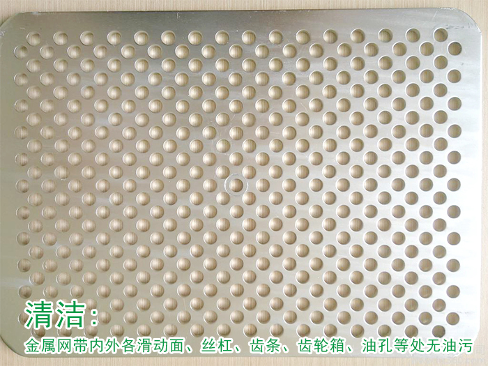 金屬網(wǎng)帶內(nèi)外各滑動面、絲杠、齒條、齒輪箱、油孔等處無油污,各部位不漏油、不漏氣,設(shè)備四周地切屑、雜物、臟物機(jī)械工程師要清掃干凈;