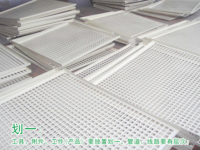 工具、附件、工件(產(chǎn)品) 要放置劃一,管道、線路要有層次;